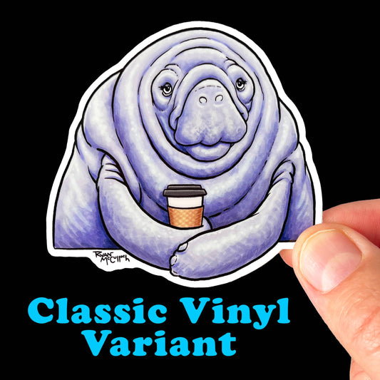 HOLOGRAPHIC STICKER: Coffee Loving Manatee