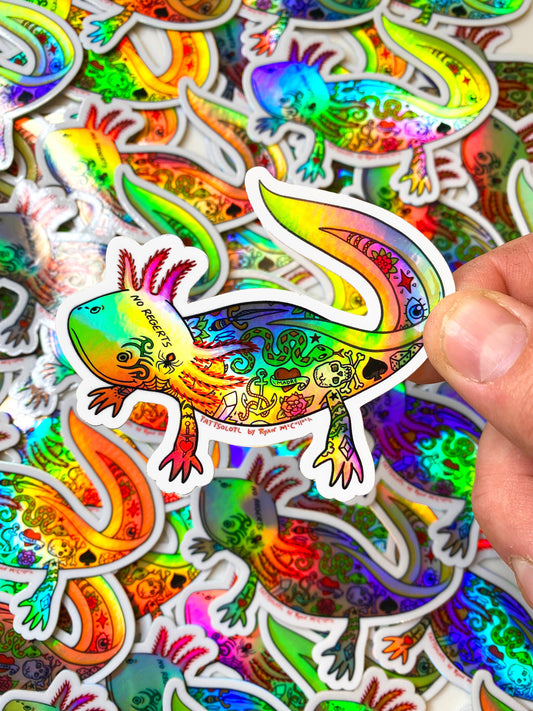HOLO STICKER: "Tattsolotl" Tattooed Axolotl