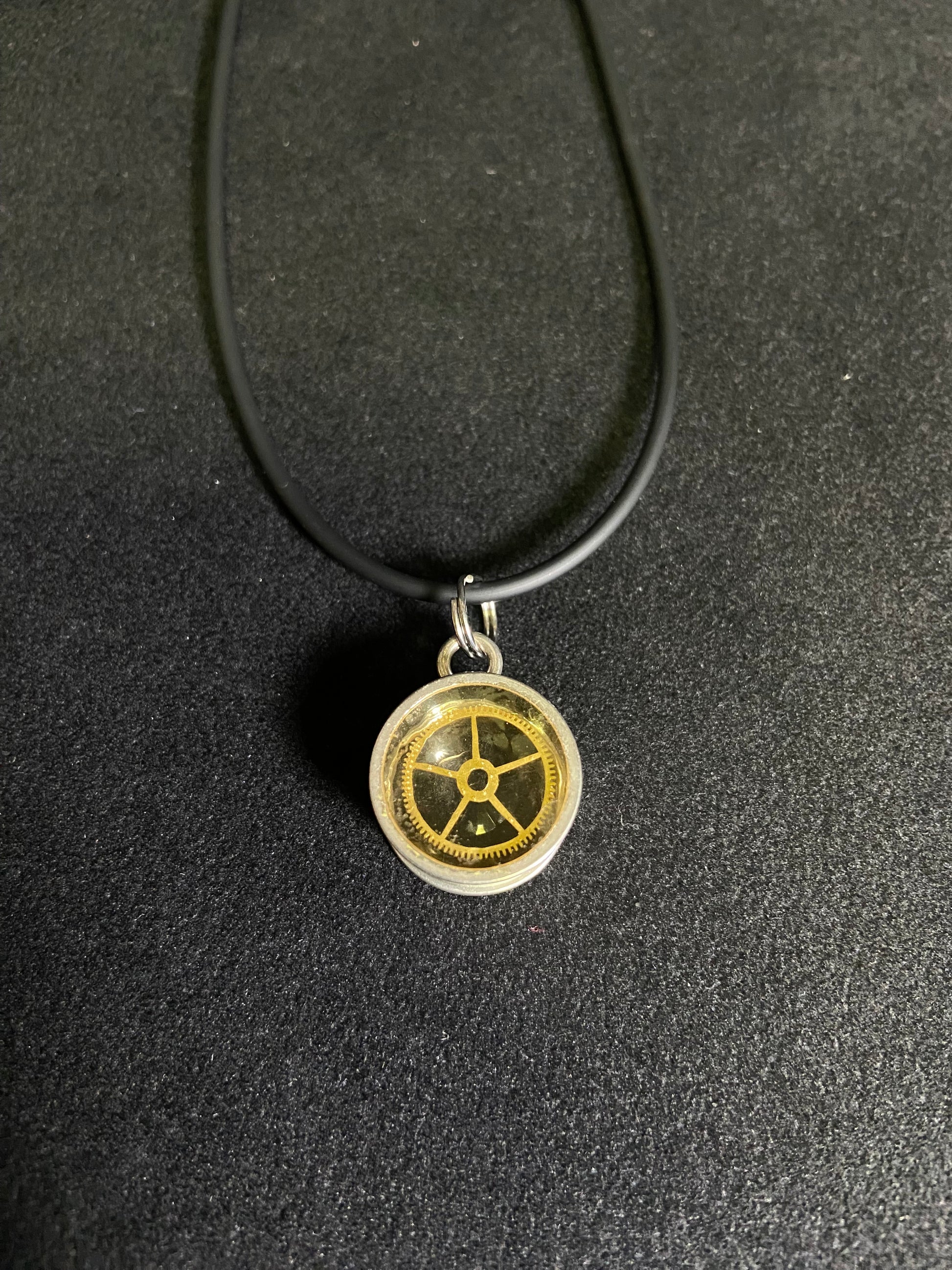 Translucent Silver Round Pendant with Center Wheel by Jennifer Ingalls