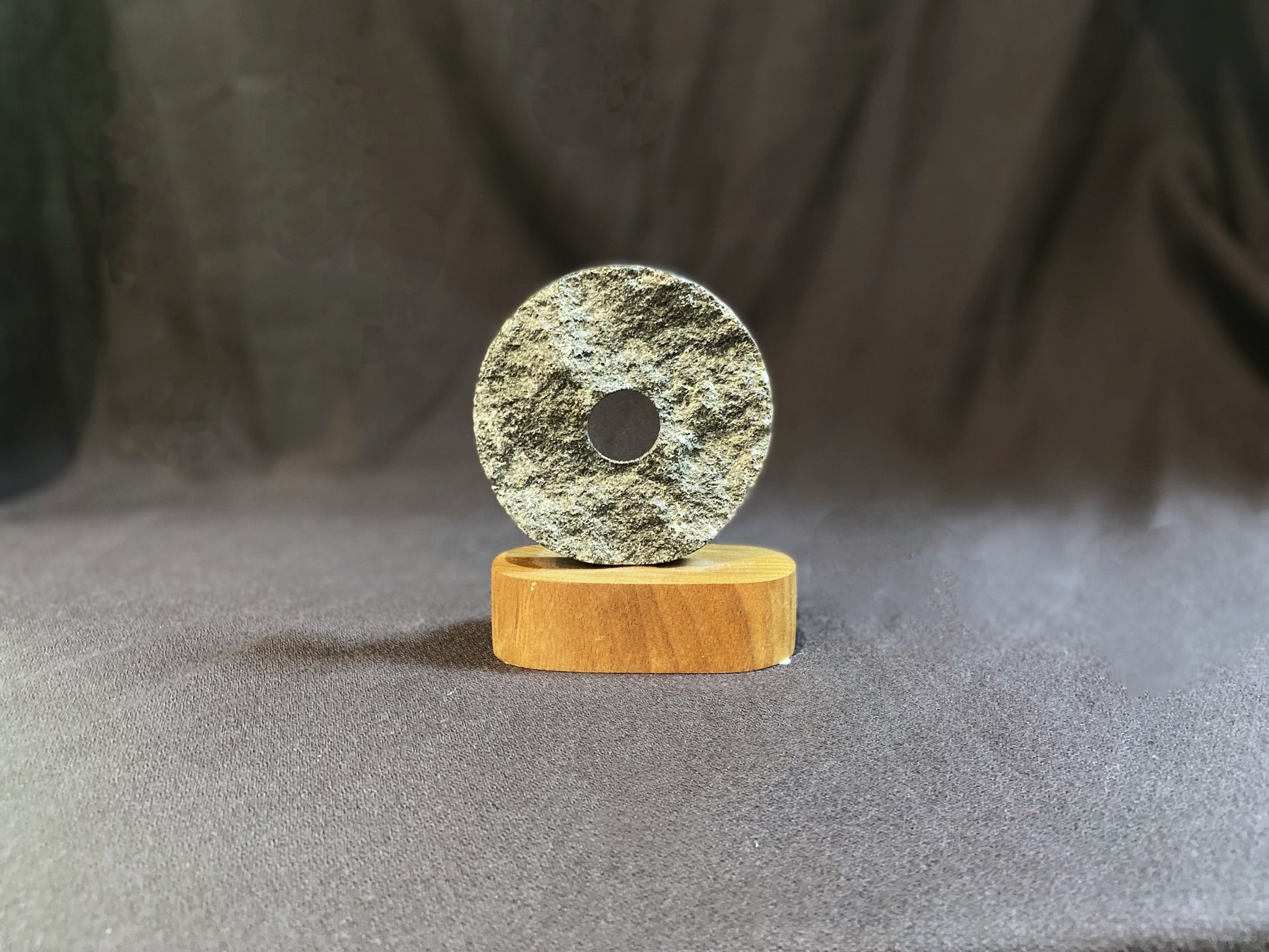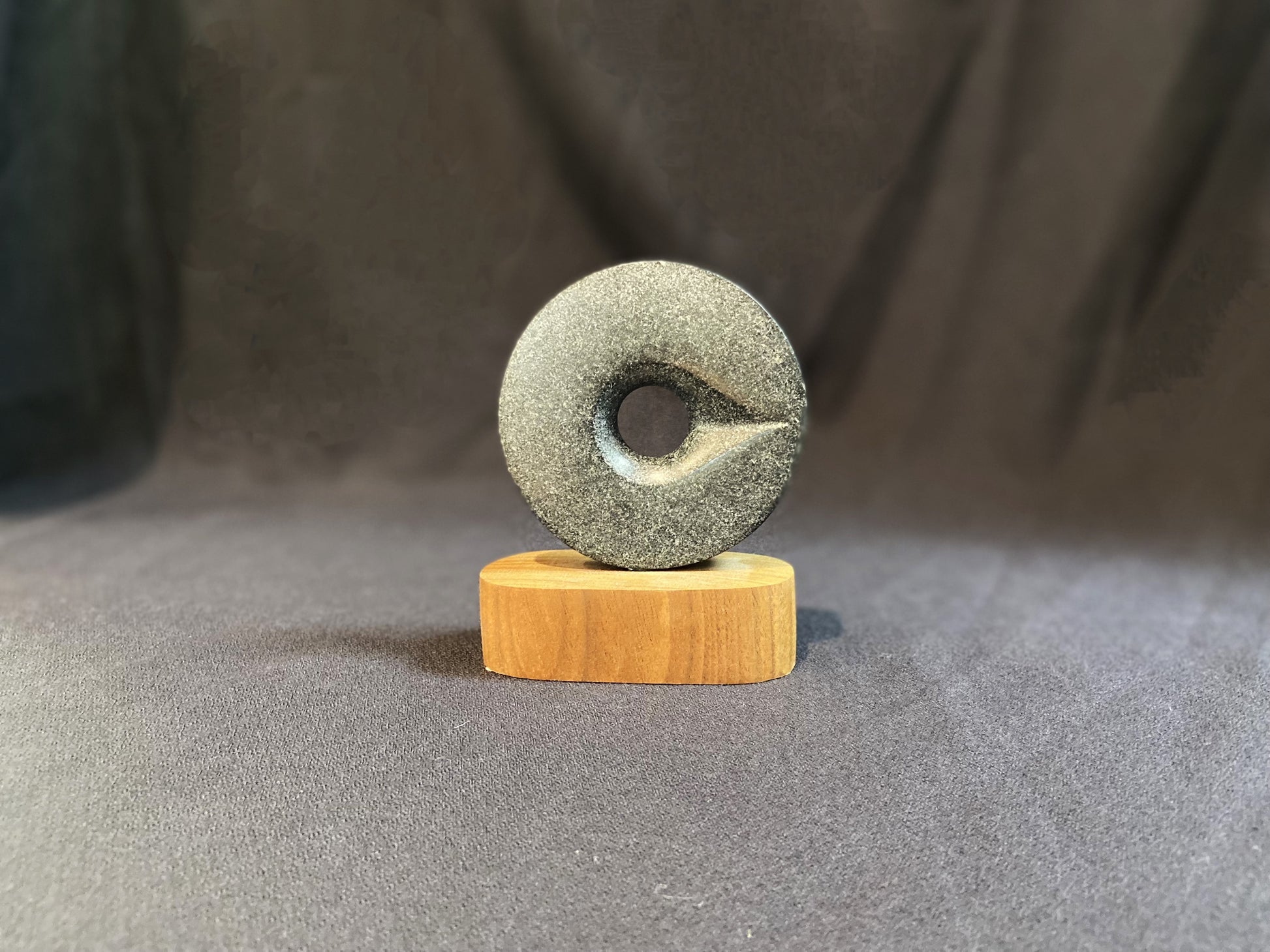 Take home this one-of-a-kind Mike Andrews piece made from stone on a wooden base.